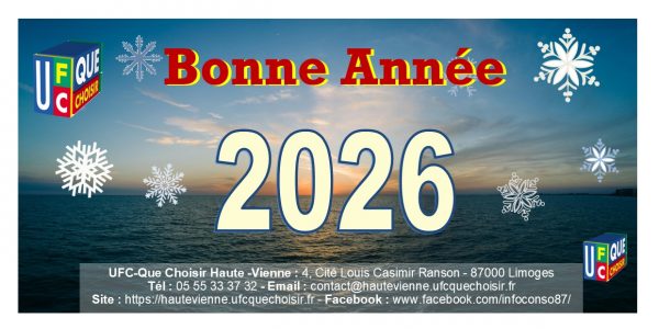 A l’aube de 2026, toute l’équipe de bénévoles de l’UFC-Que Choisir de la Haute-Vienne qui vous informent, vous alertent et vous défendent, vous présente leurs meilleurs vœux pour une très bonne année nouvelle dans l’action !